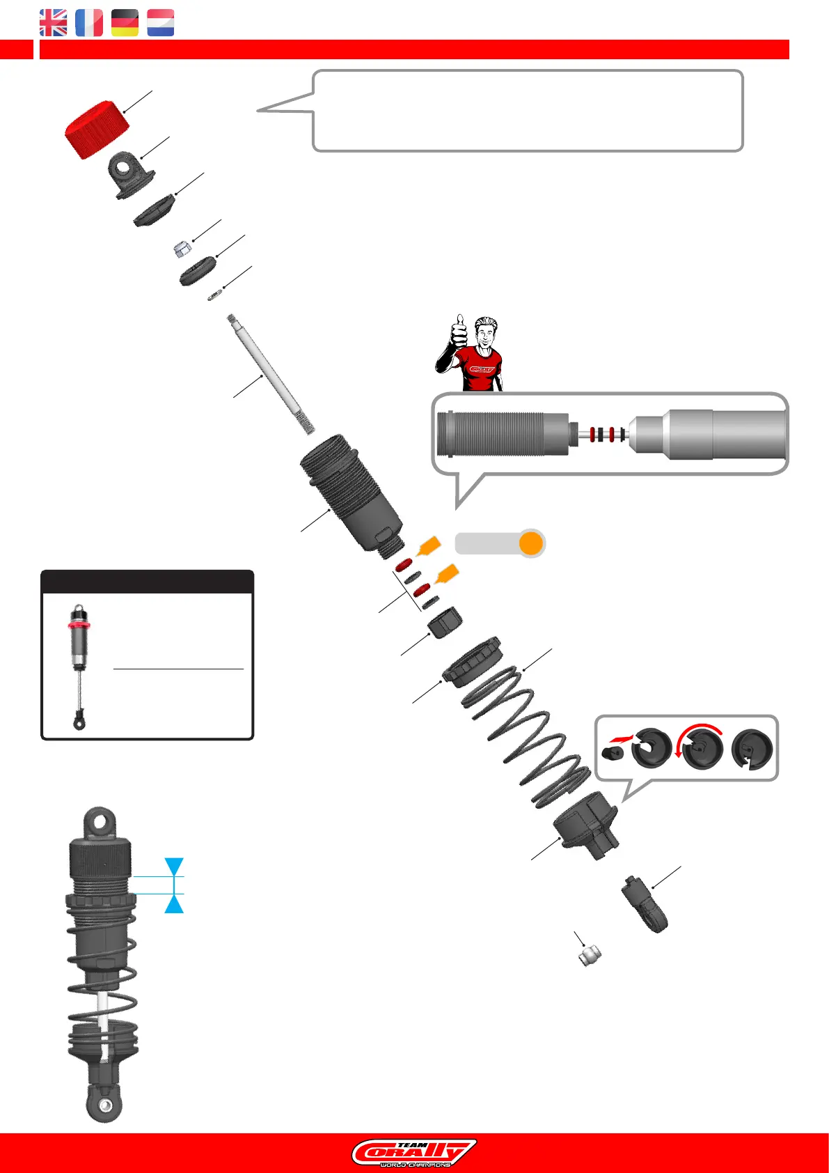 poussez-les dans le corps de l’amortisseur. Toutes les pièces