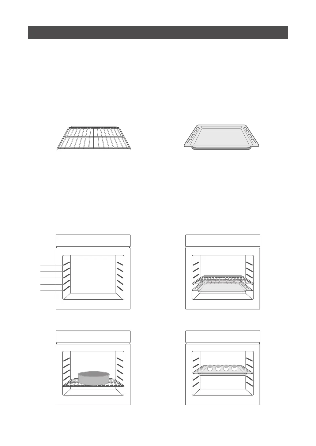 For the oven to work properly, the grill rack and Baking Tray should only be placed