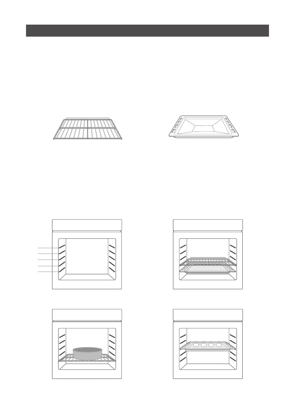 For the oven to work properly, the grill rack and Baking Tray should only be placed