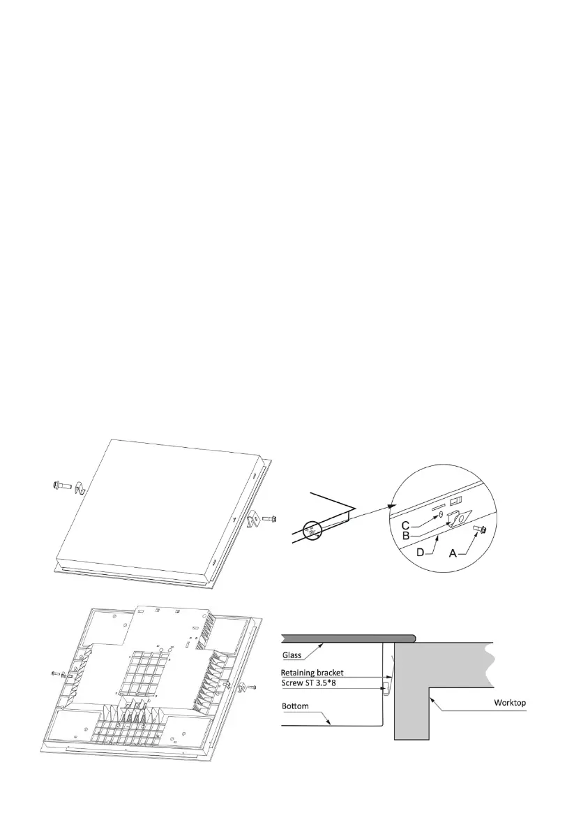 Después de su instalación, fije la cocina en la superficie de instalación atornillando los 2 soportes
