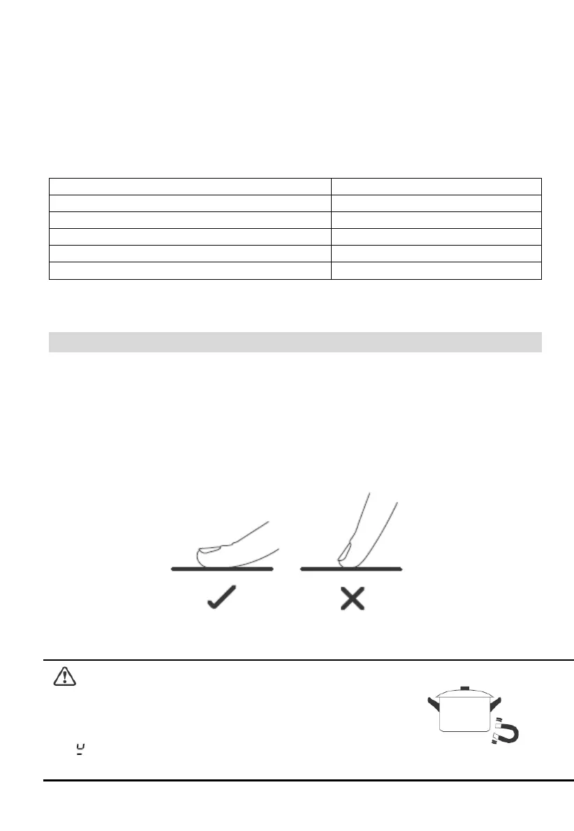 • You can check whether your cookware is suitable by carrying out a magnet test.