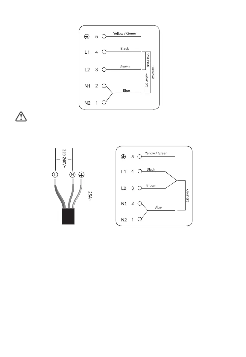 be connected directly to the mains by single-phase electric connection, as shown below.