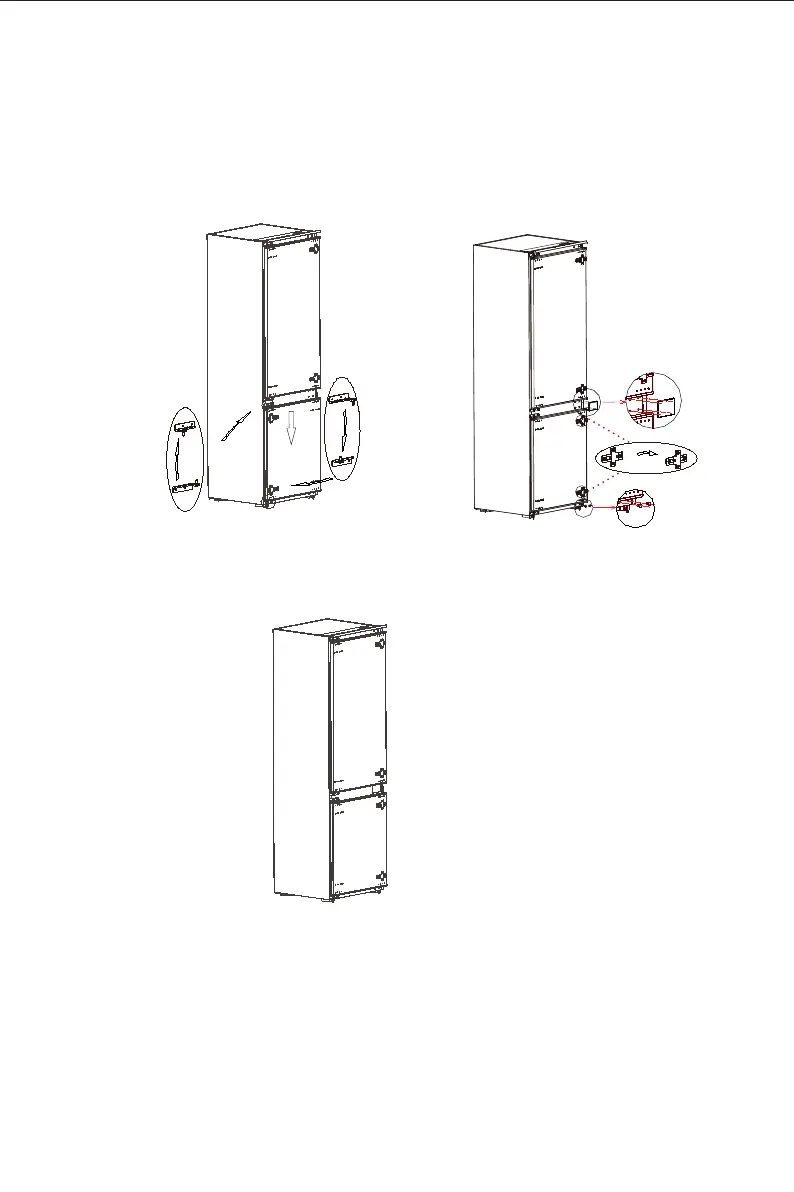 8) Retire los dos bloques fijos de la puerta del congelador y gírelos 180 °,e instálalas