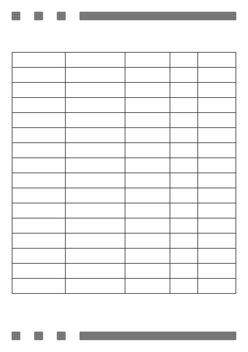 COOKING TIME TABLE