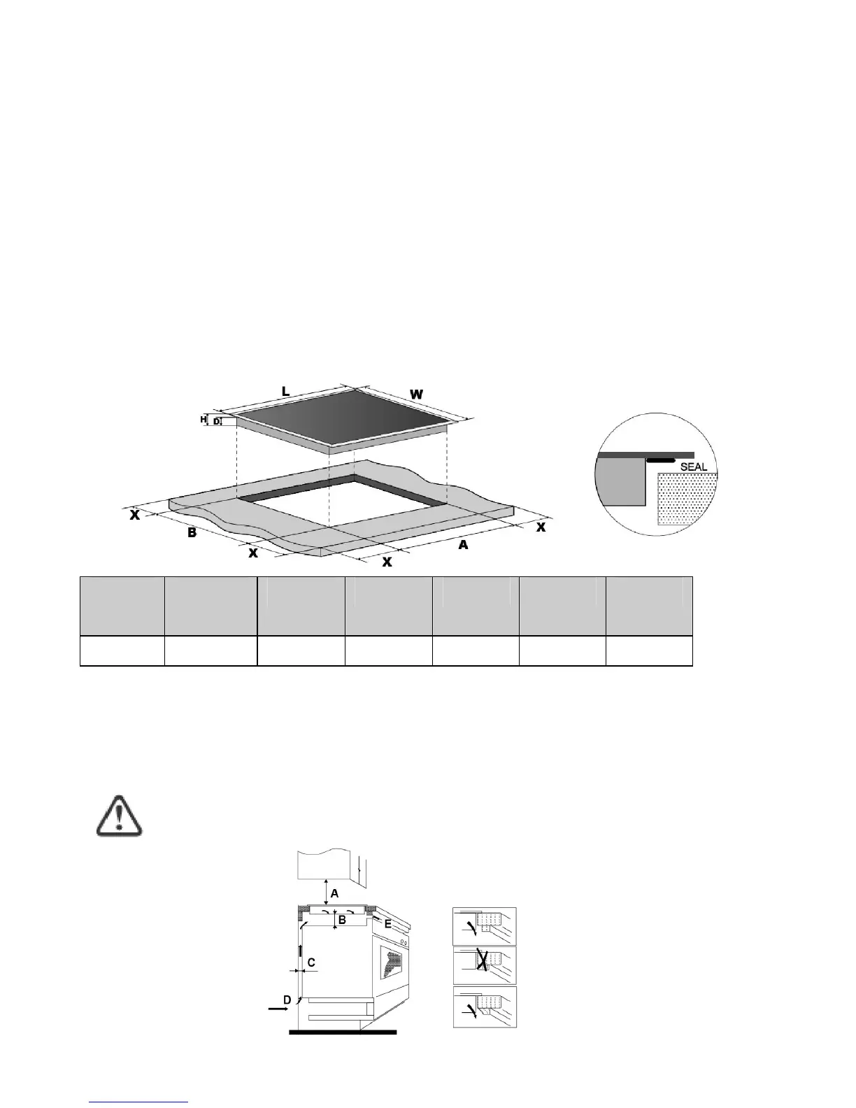 Nota: A distância de segurança entre a placa e o armário acima da placa