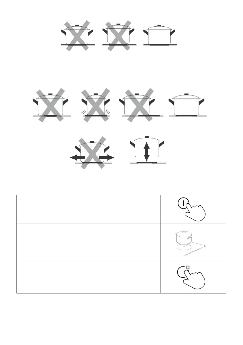 el mismo tamaño que la zona de cocción. Utilice ollas o sartenes con un diámetro de base del mismo tamaño