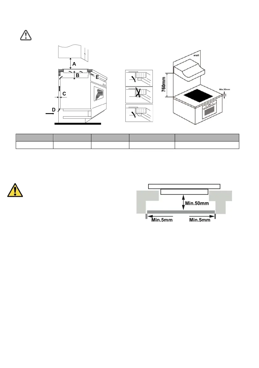 Note: The safety distance between the hotplate and the cupboard above the hotplate