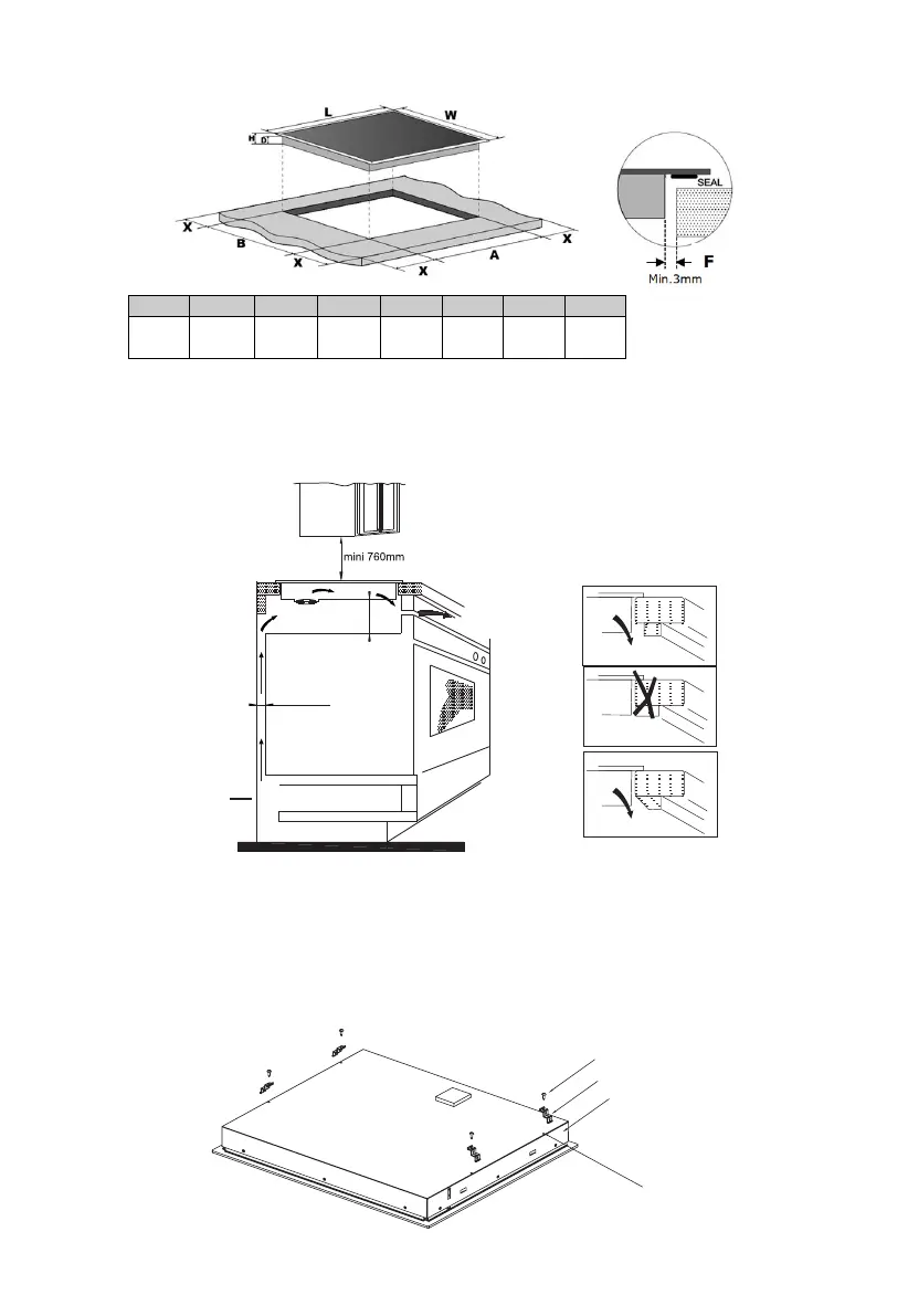 Fix the hob on the table by screw four brackets on the bottom of hob