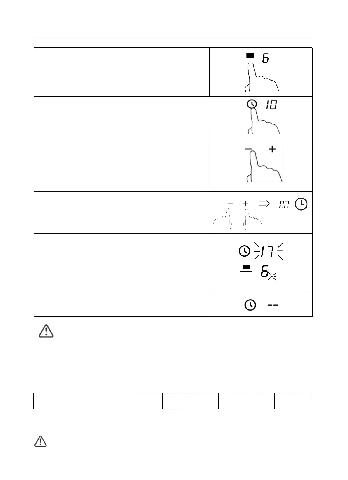 desligar o fogão. Os tempos de funcionamento predefinidos para os diferentes