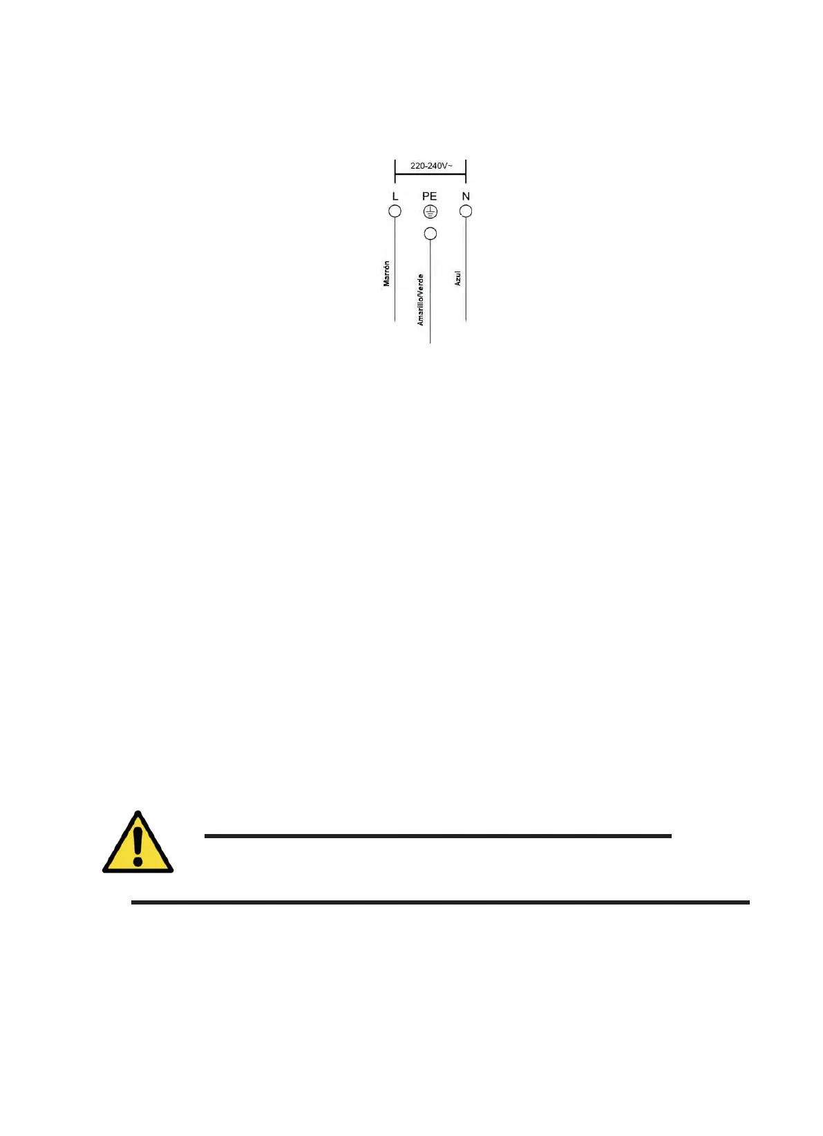 O fio amarelo/verde do cabo de alimentação deve ser ligado à terra nos terminais da