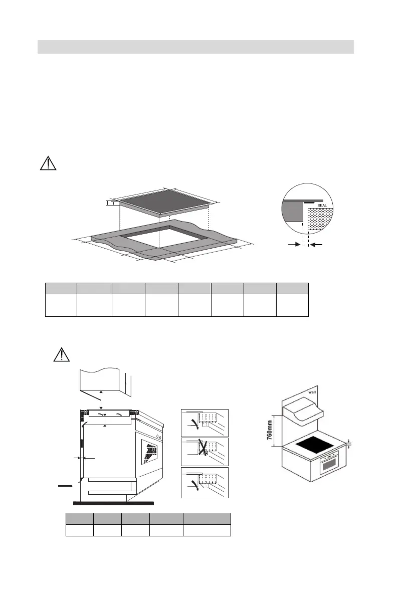 Note: The safety distance between the hotplate and the cupboard above the hotplate should be at