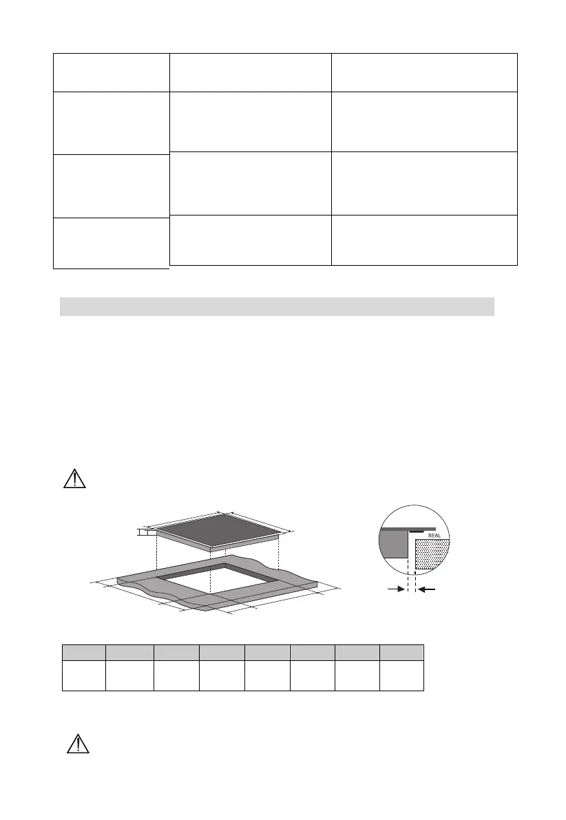 encastre. Asegúrese de que el espesor de la superficie de trabajo es como mínimo 30mm. Por favor