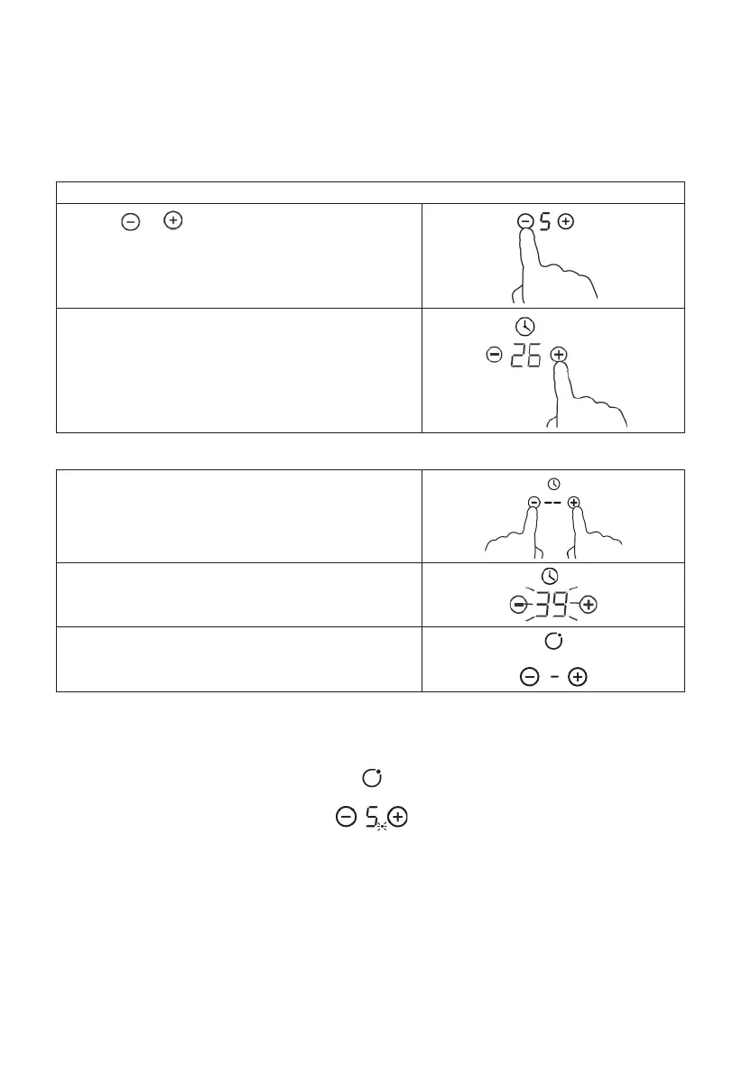 Ao tocar nos "-" e "+" em conjunto, o temporizador é