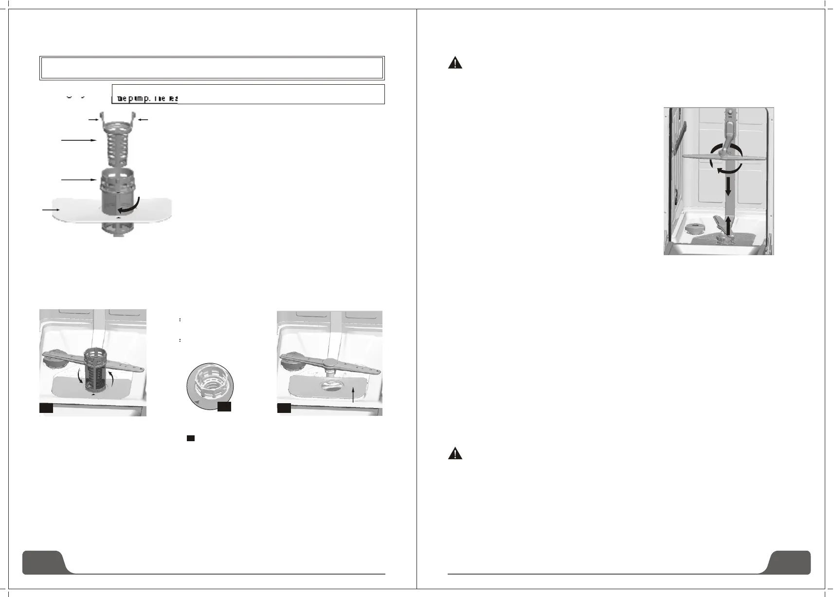 pressing downward. The dishwasher must never be used without the filters. Improper replacement