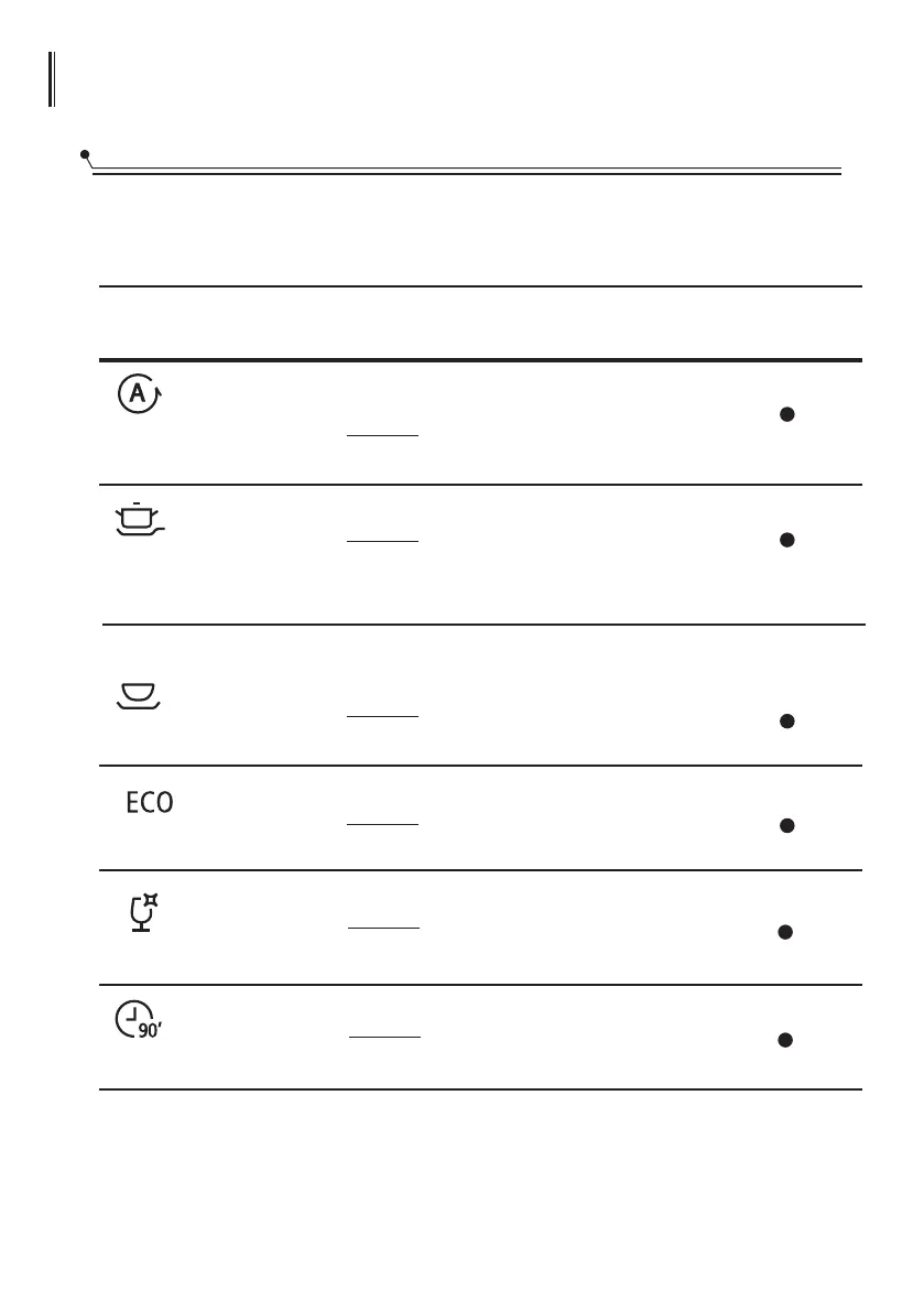 Tabla de ciclos de lavado