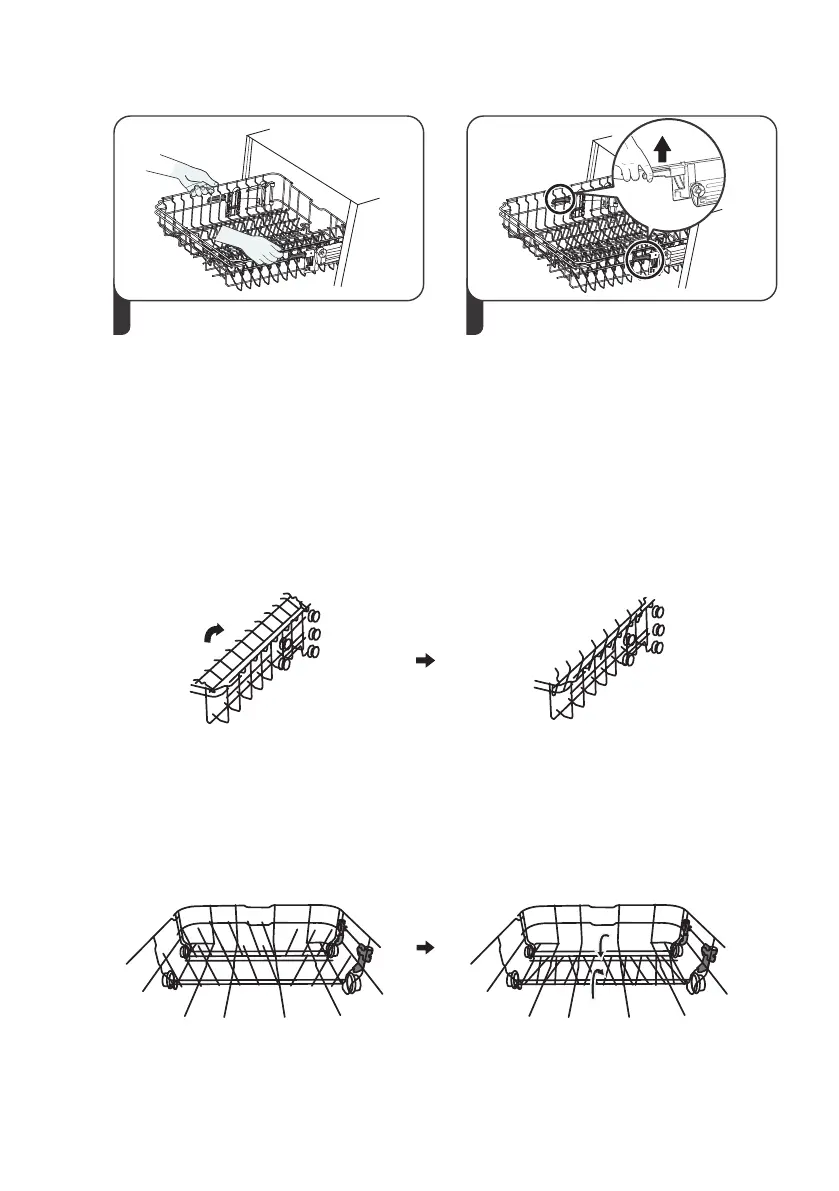 To make room for taller items in the upper basket, raise the cup rack upwards.