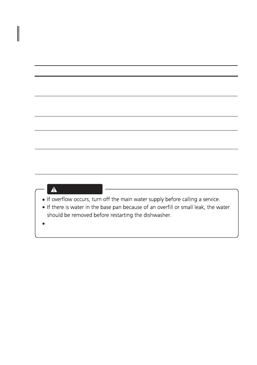 If there is a malfunction the dishwasher will display an error code. The following table