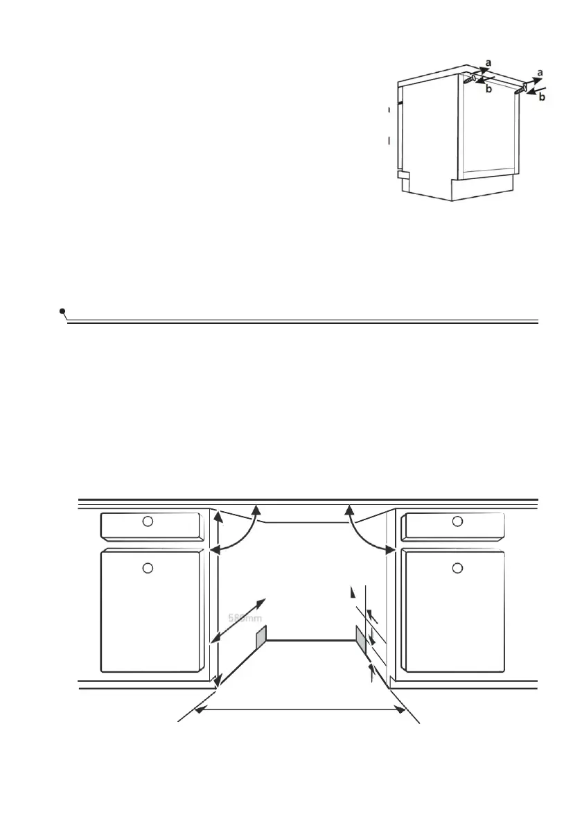 1. Menos de 5 mm entre a parte superior da máquina de lavar louça e o armário