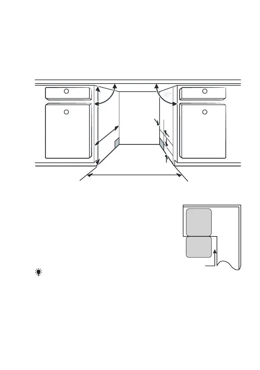 1. Less than 5 mm between the top of dishwasher and cabinet and the outer door