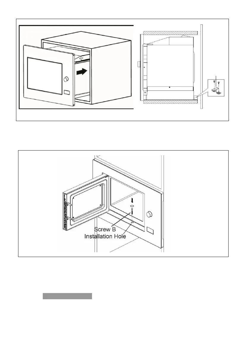 5. Open the door, fix the oven to the cabinet with Screw B, at the installation hole.