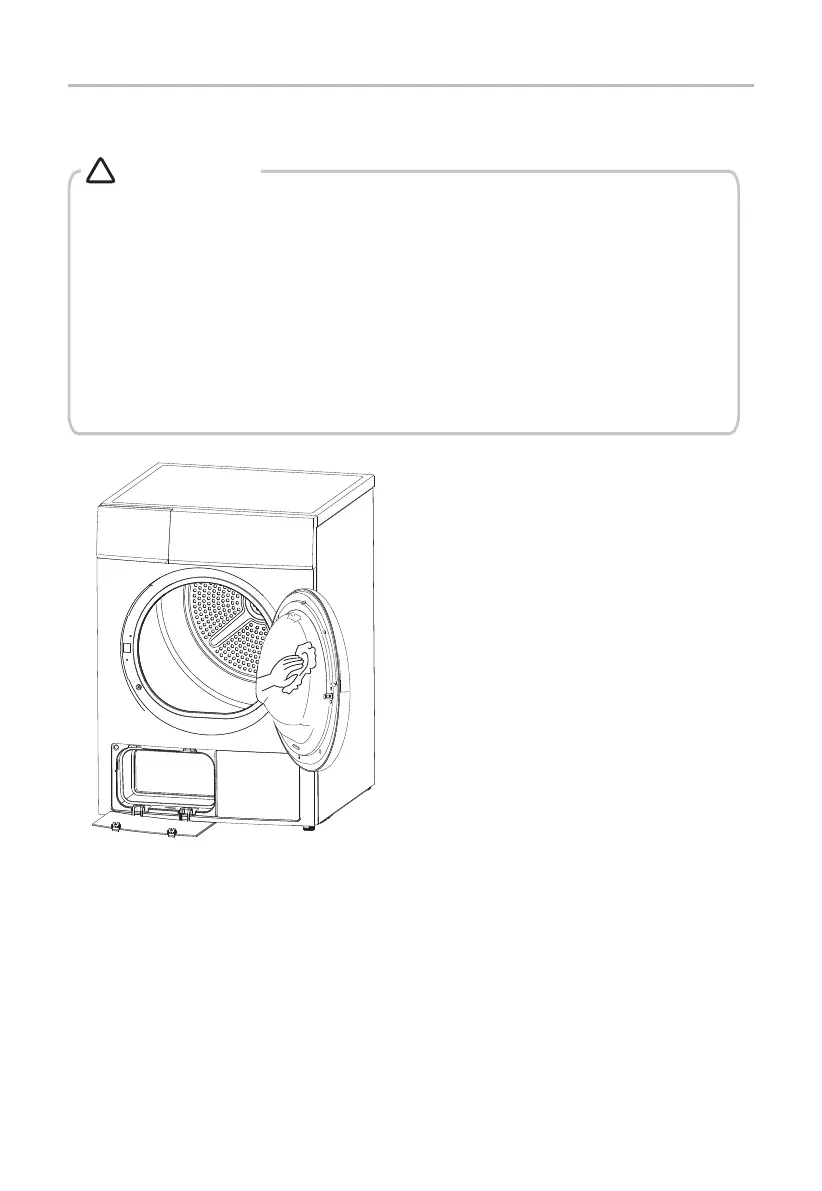 • Clean the dryer with a wet cloth which is