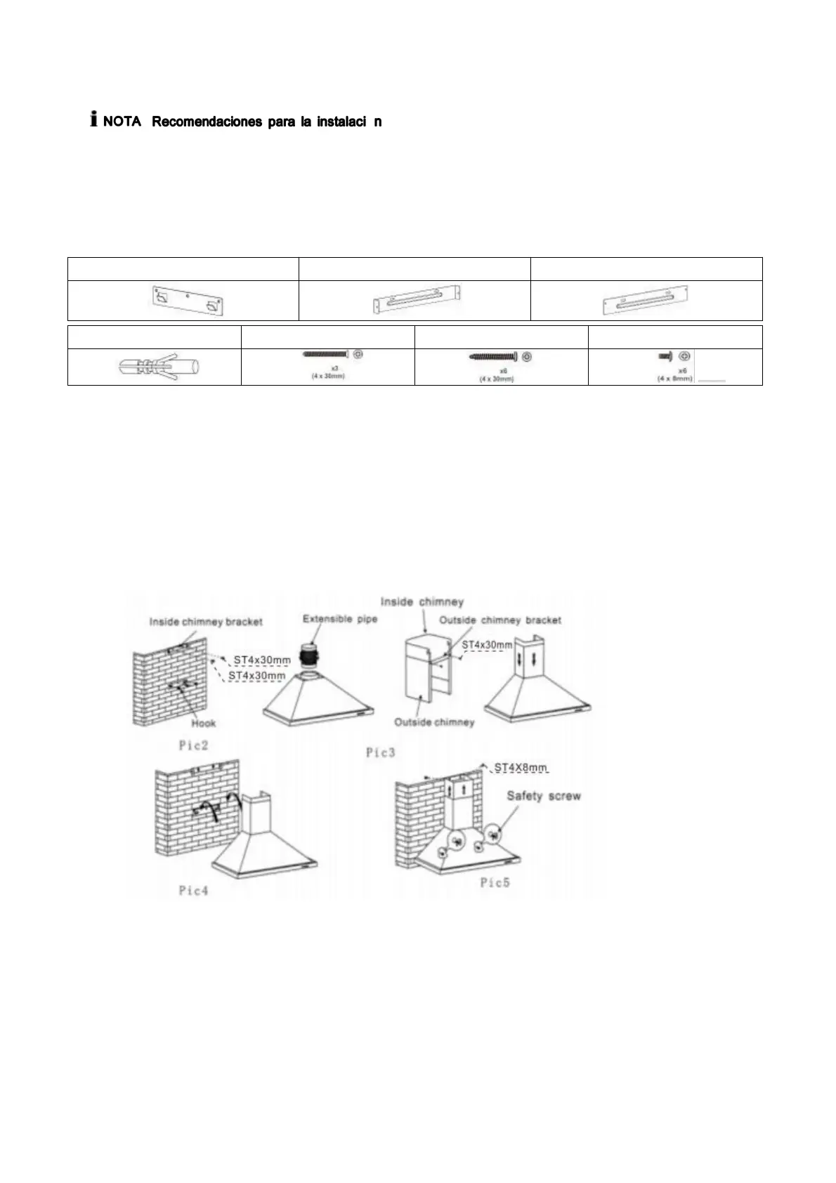 • Determine la posici6n de la campana extractora centrada sobre la placa de cocci6 n, cumpliendo con las