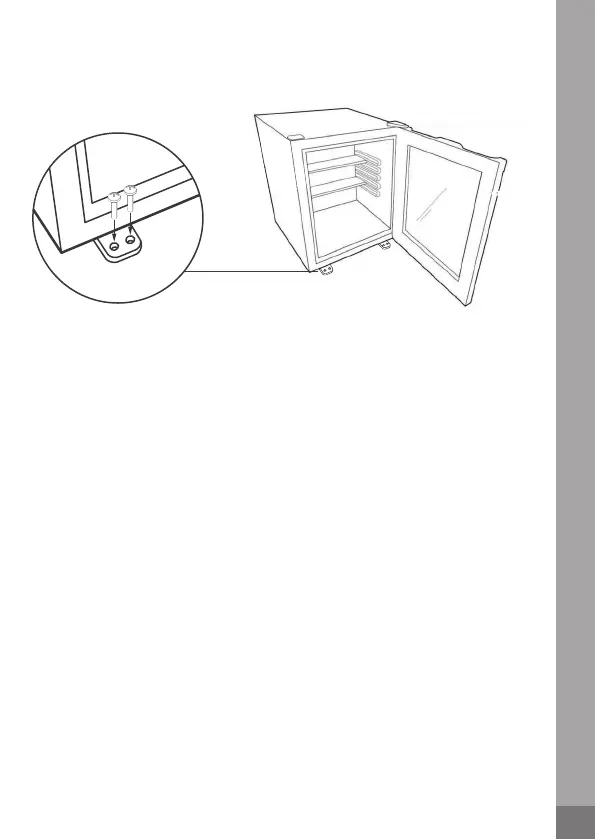 Pour fixer le minibar en position, visser à travers les trous des pieds en utilisant les