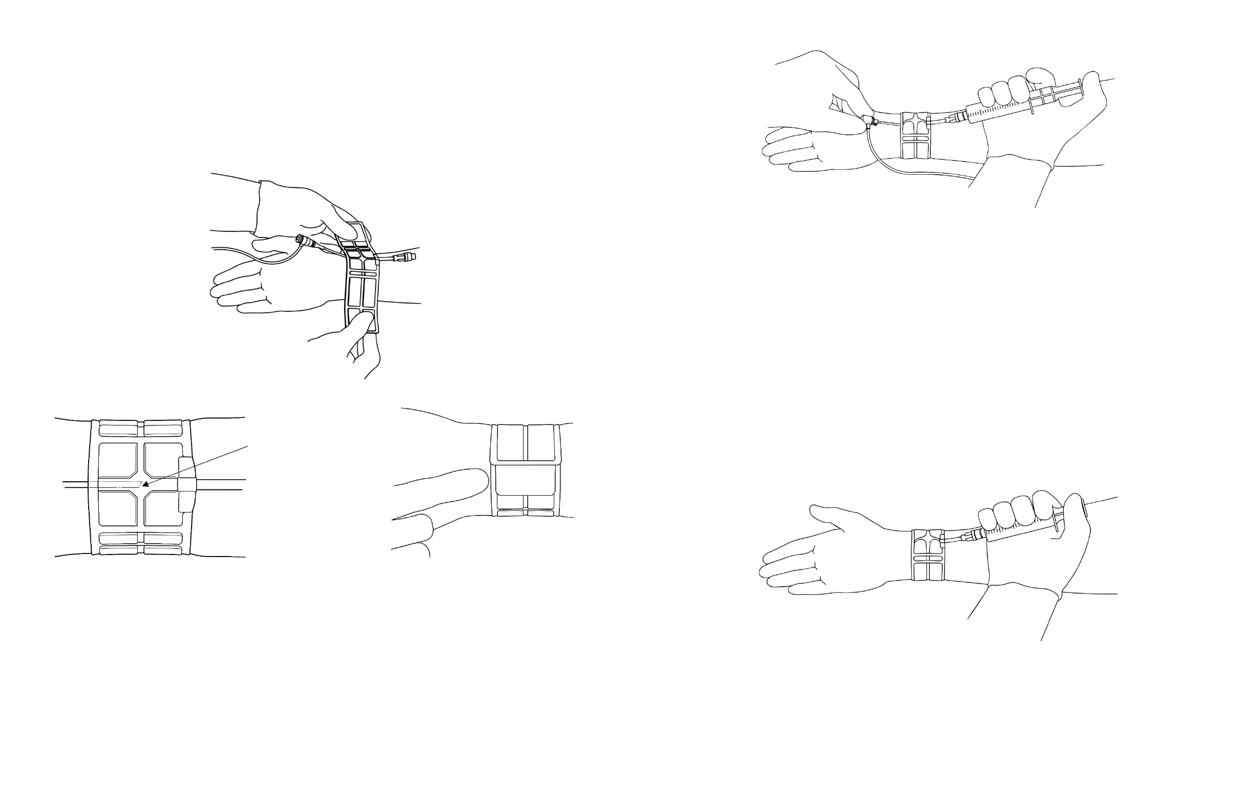 2. Placement. Place the Strap (with balloon uninflated) around the wrist with the tubes facing either direction (operator preference), with the sheath and skin