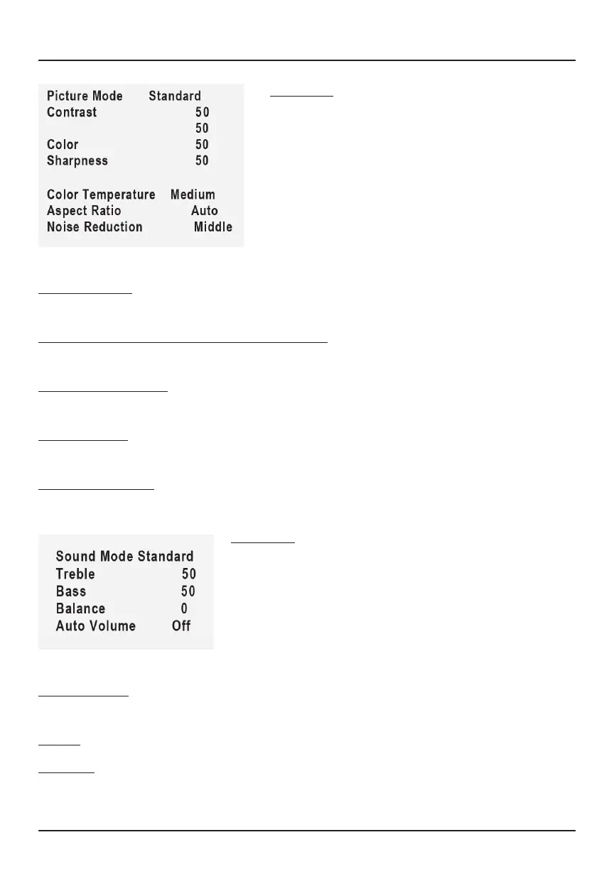 Contrast / Brightness / Color / Sharpness: Use the up/down arrows on the
