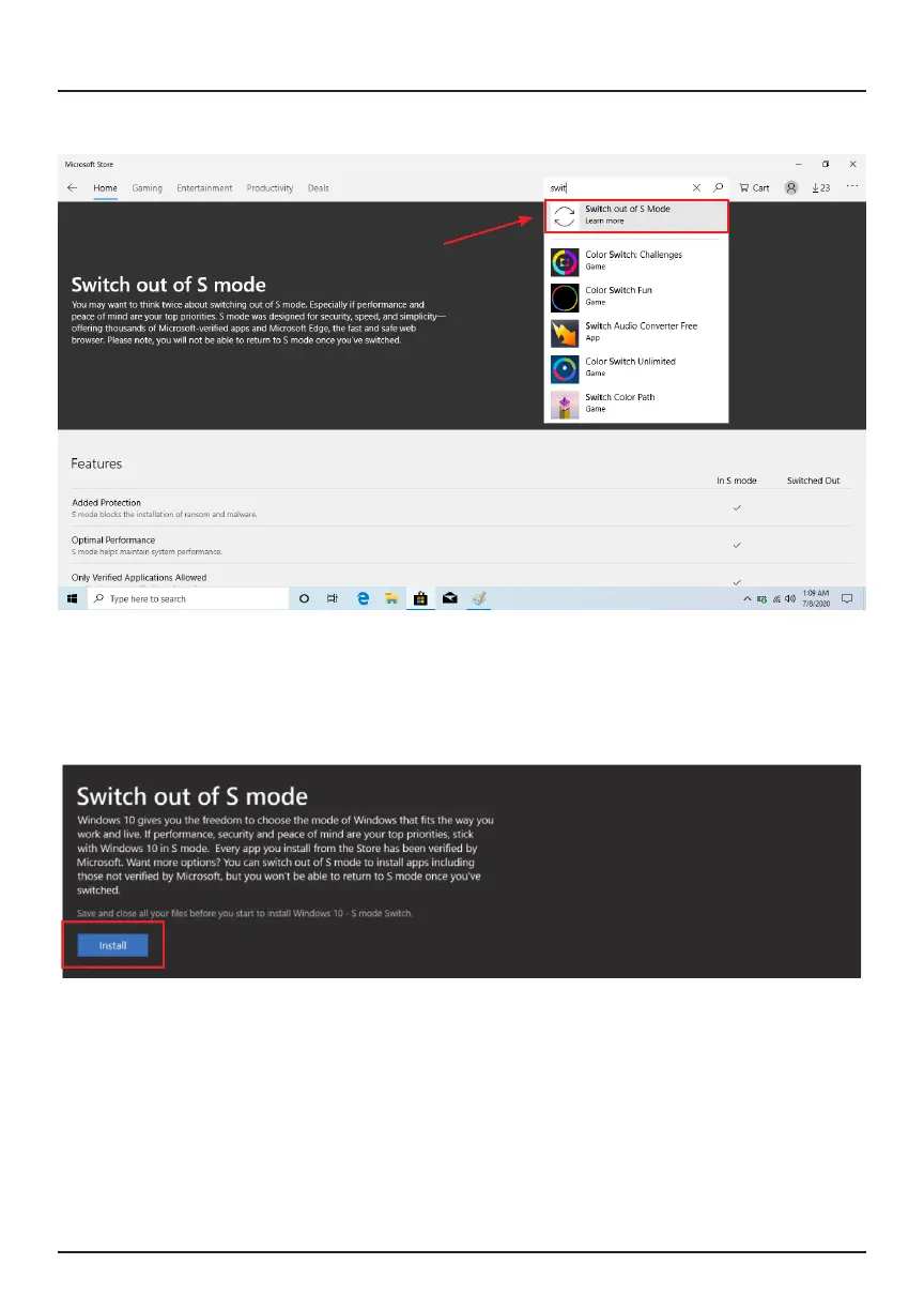 2. In the Microsoft™ Store, search for “Switch out of S Mode.”