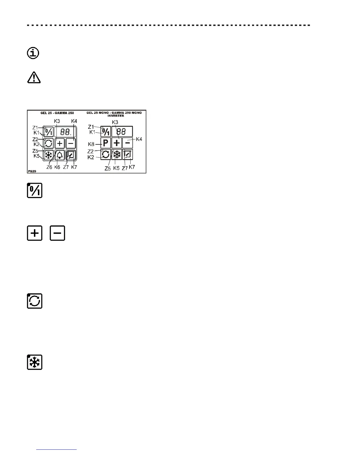 - The start up of the refrigerating plant (the [Z5] indicator of this button lights up);
