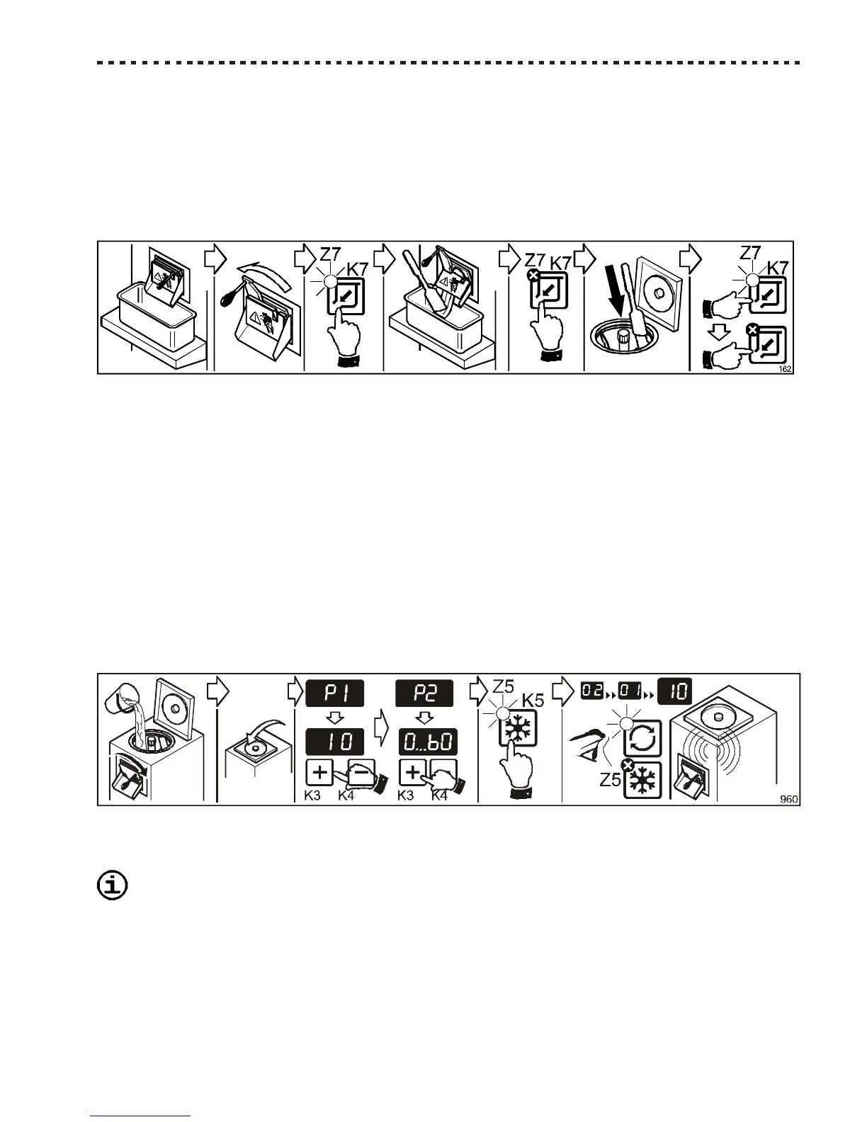 - wait the end of the functioning, signalled by the shutting down of the REFRIGERATION/WHIPPING indicator [Z5] and the