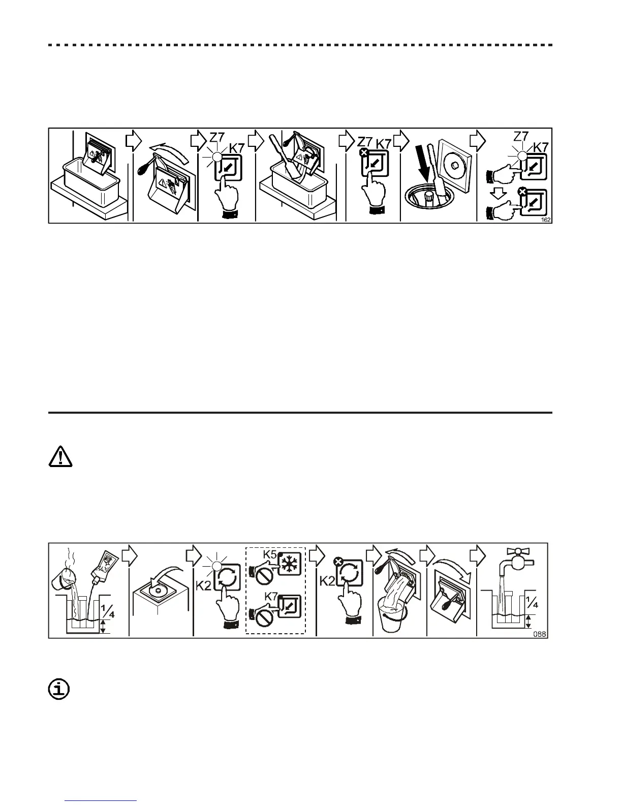 - wait the end of the functioning, signalled by the shutting down of the REFRIGERATION/WHIPPING indicator [Z5] and the