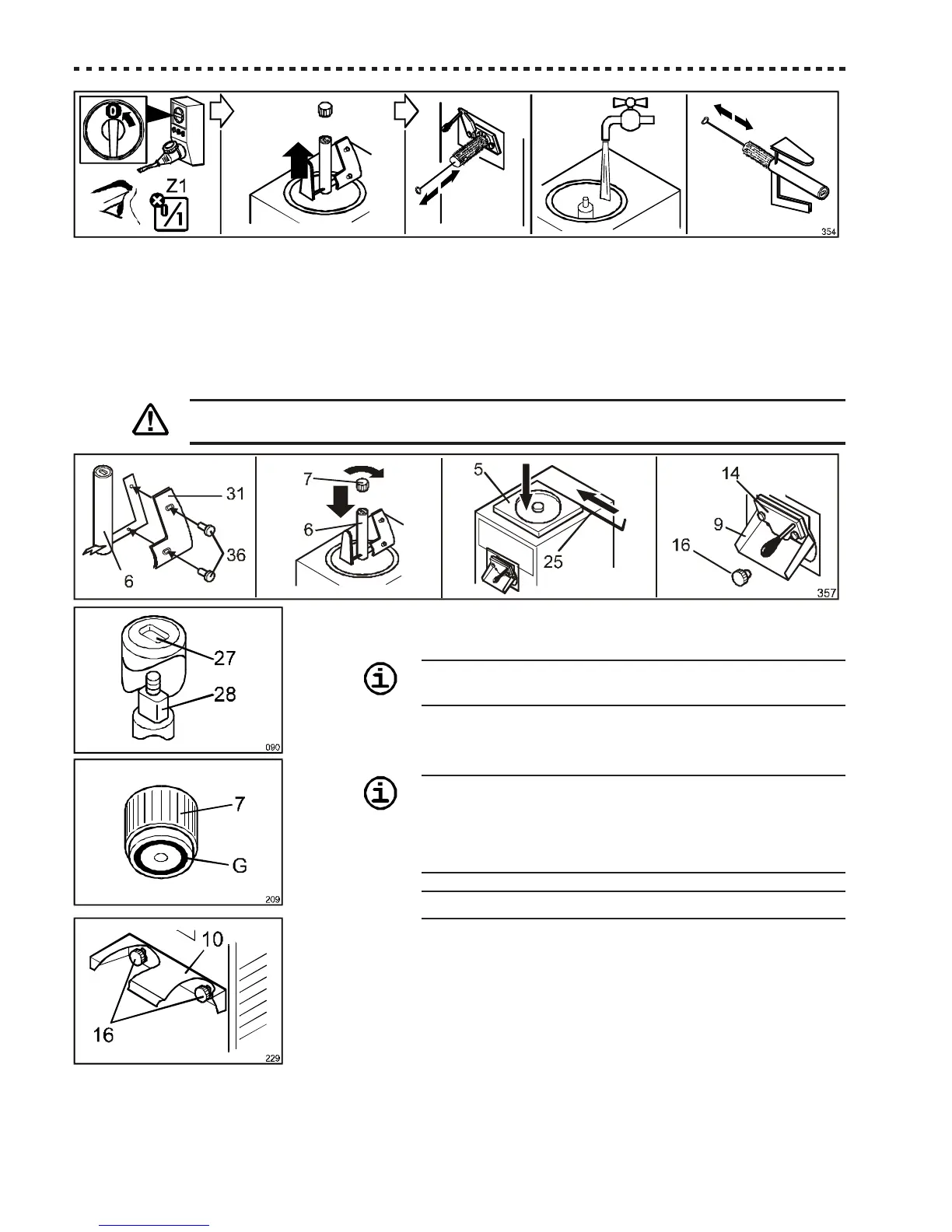 Before tightening knob [7], always check that the gasket [G] is
