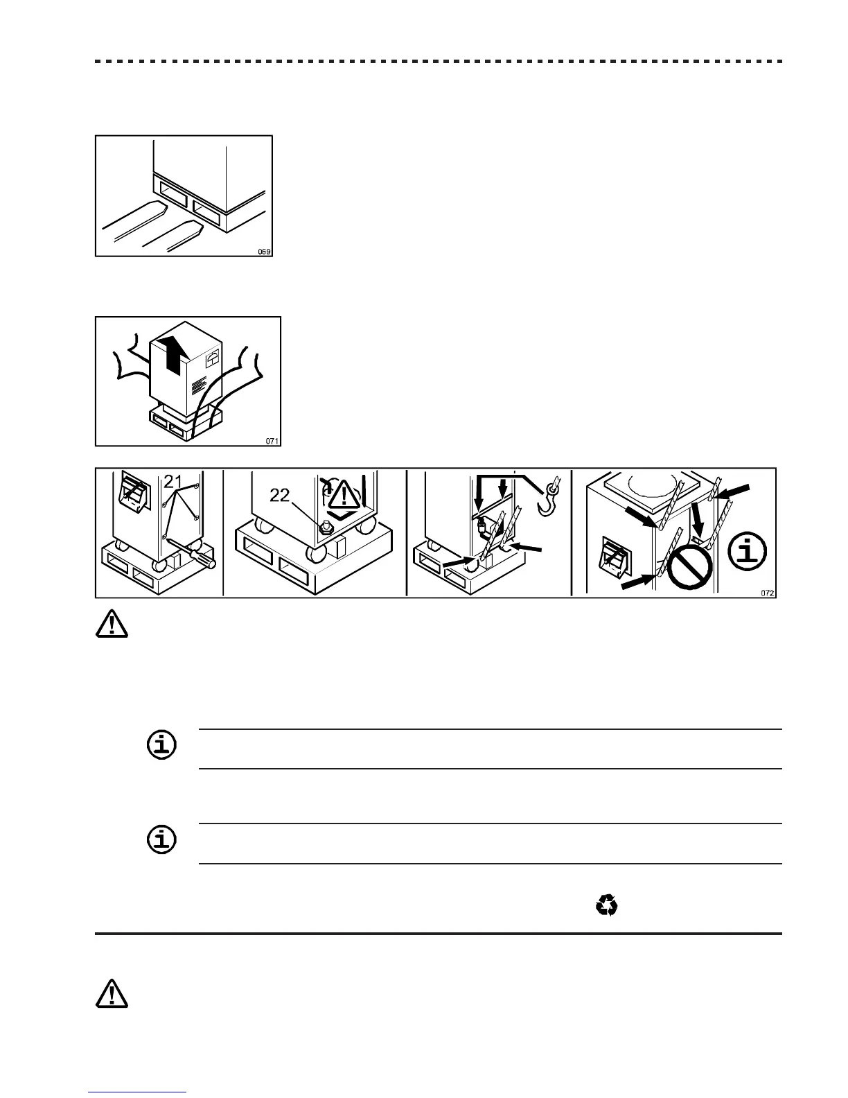 It is therefore suggested to transport the machine while it is packed as near as possible