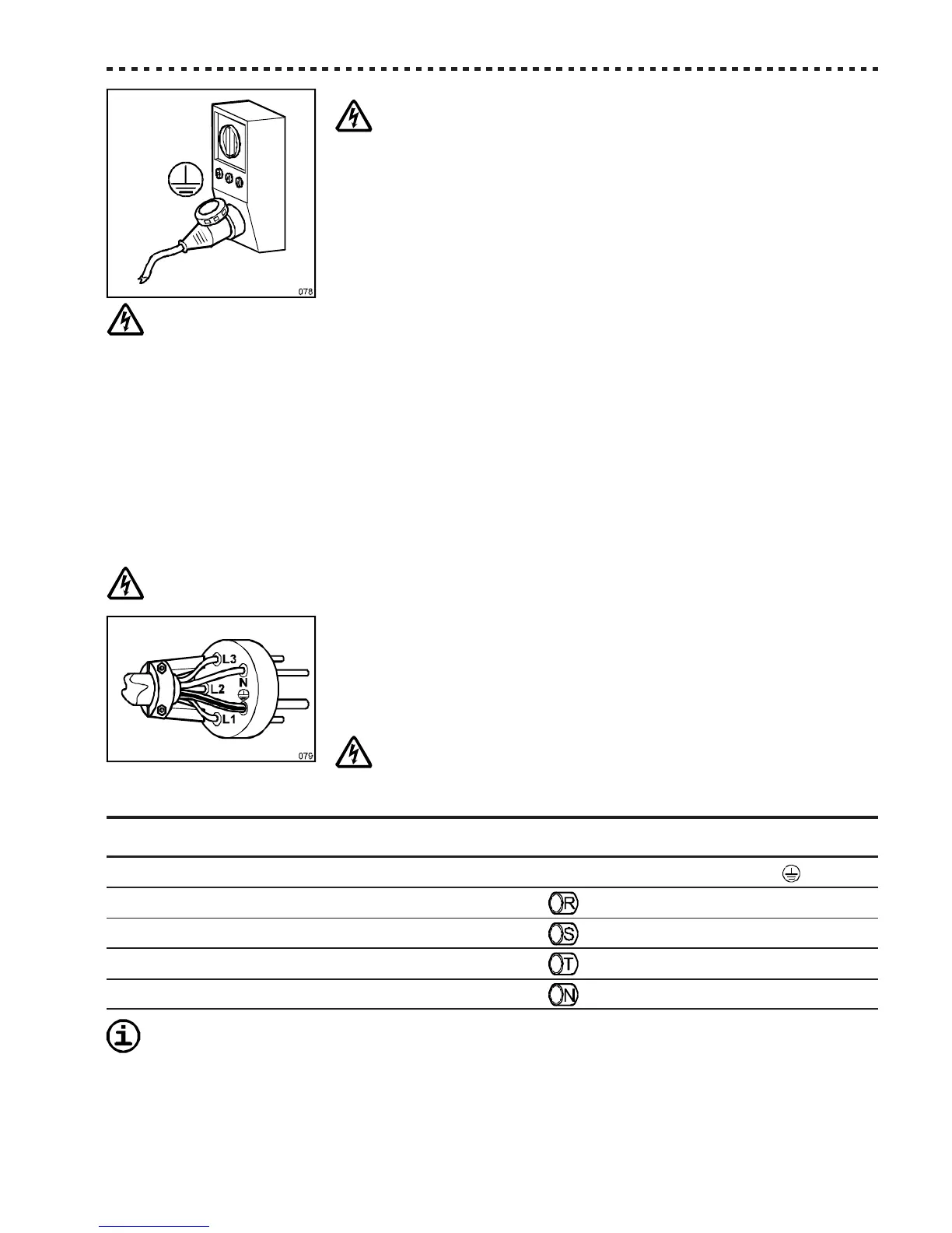 appropriate letters (phases R-S-T + neutral N + earth); the earth’s pole must be recognizable;