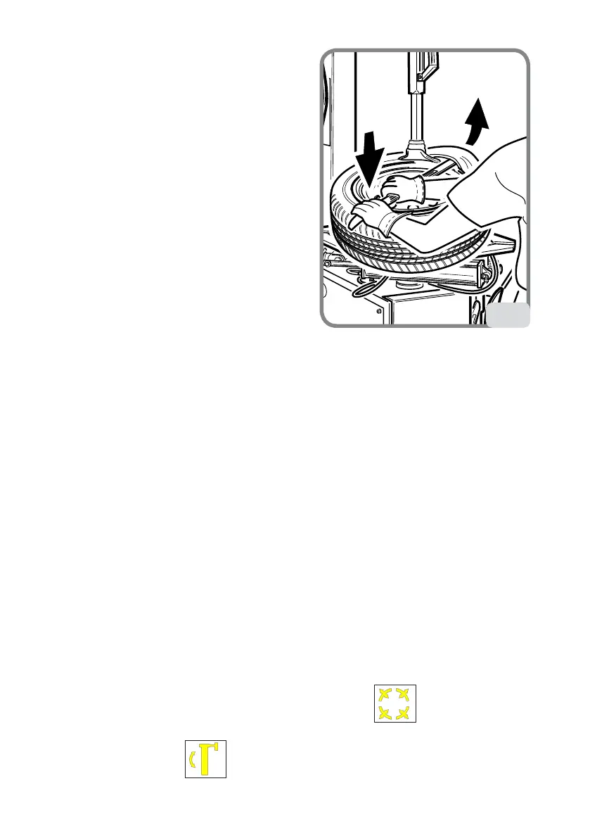 - Placer la roue comme indiqué à la fig.11 et approcher le détalonneur au bord de la jante.