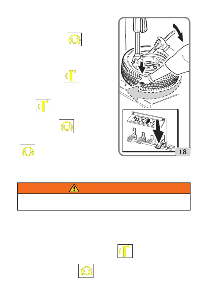 - Den Reifen auf die Felge legen und den Arm vorkippen . Die untere Wulst (Abb.20) unter