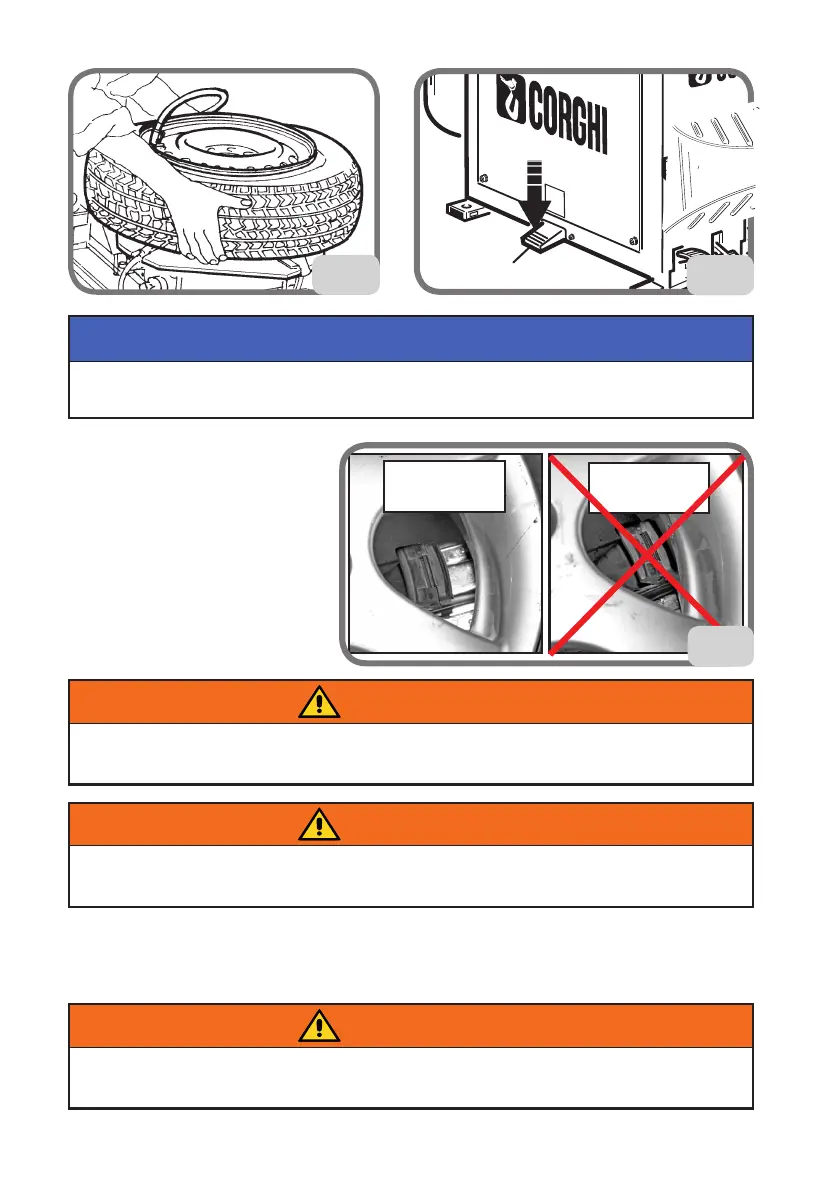 - Sbloccare la ruota dai cunei (fig.