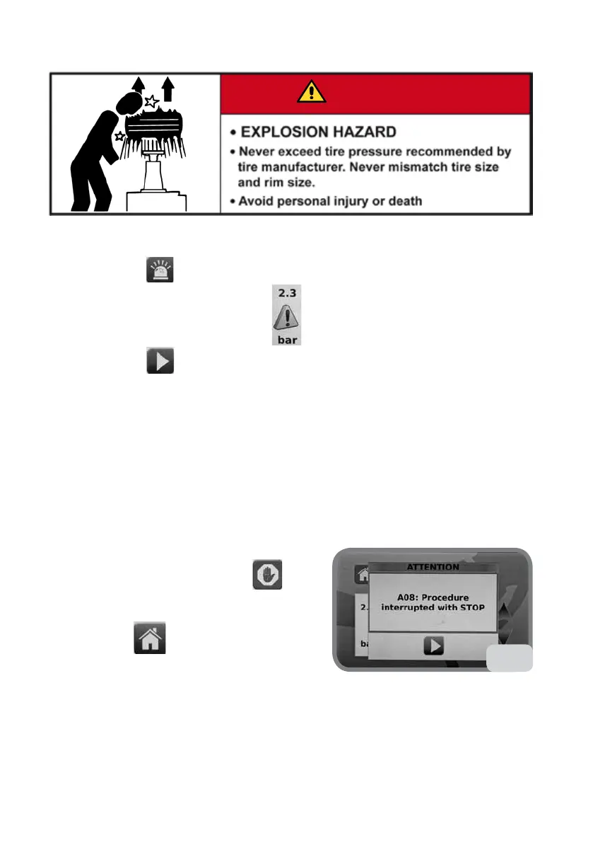 pressure limits). Once this overpressure value is reached, the system deflates the tyre