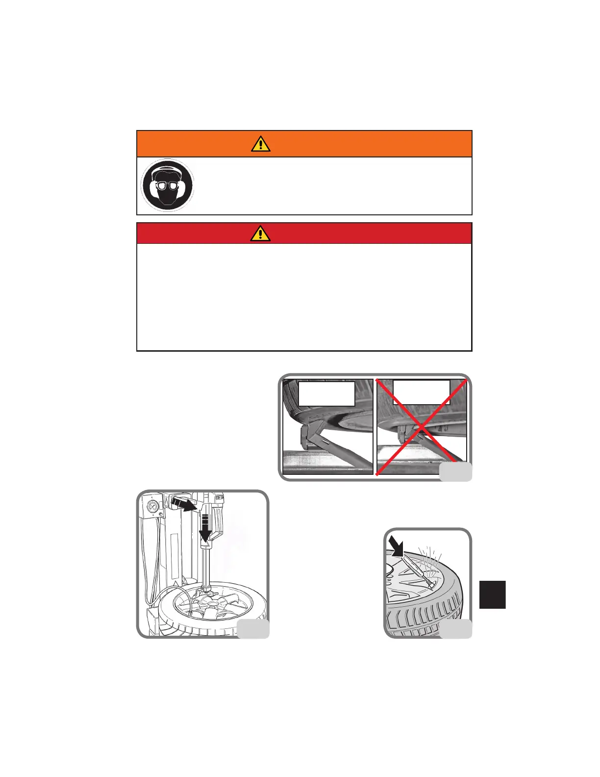 The tyre changer is not a safety device and does not prevent tyres and rims from
