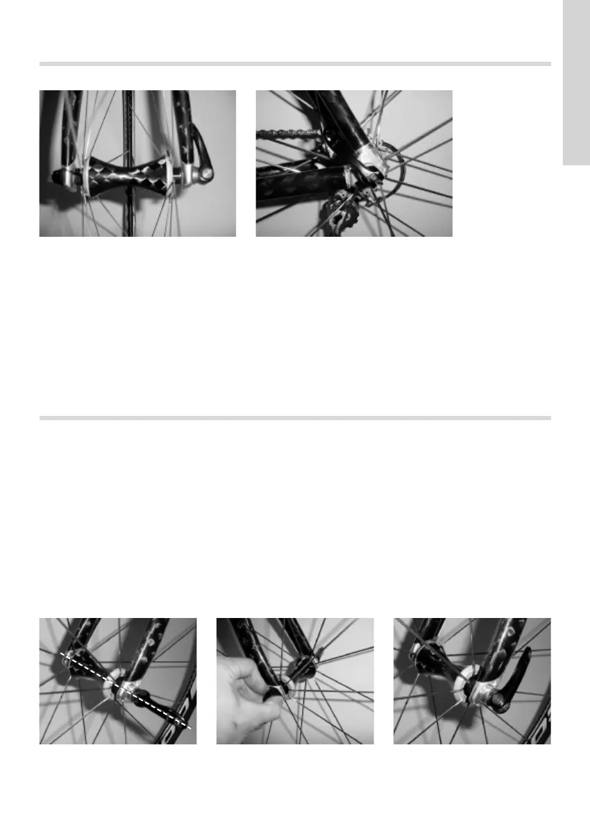 • Vérifiez le centrage de la roue par rapport au cadre et par rapport à la fourche.