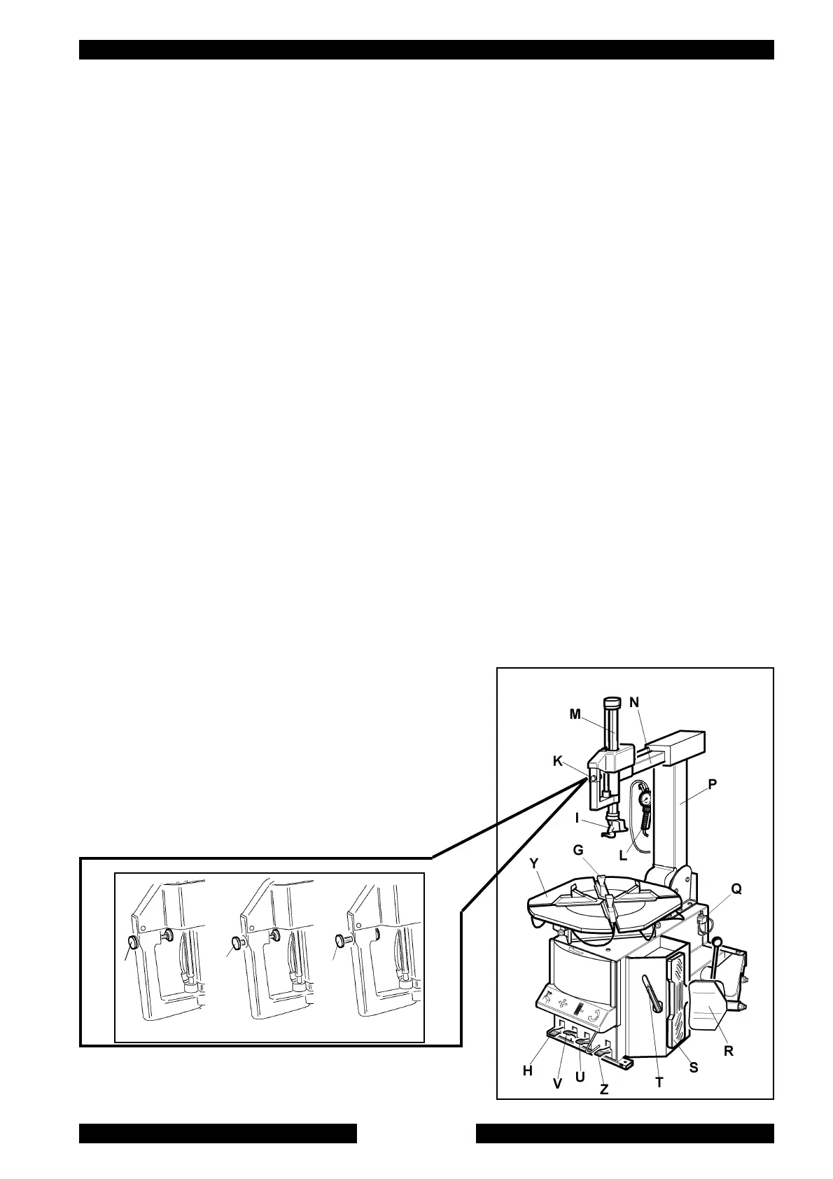 •Pressing the pedal (U) activates the bead breaker (R); when the pedal is released the bead breaker returns to its original