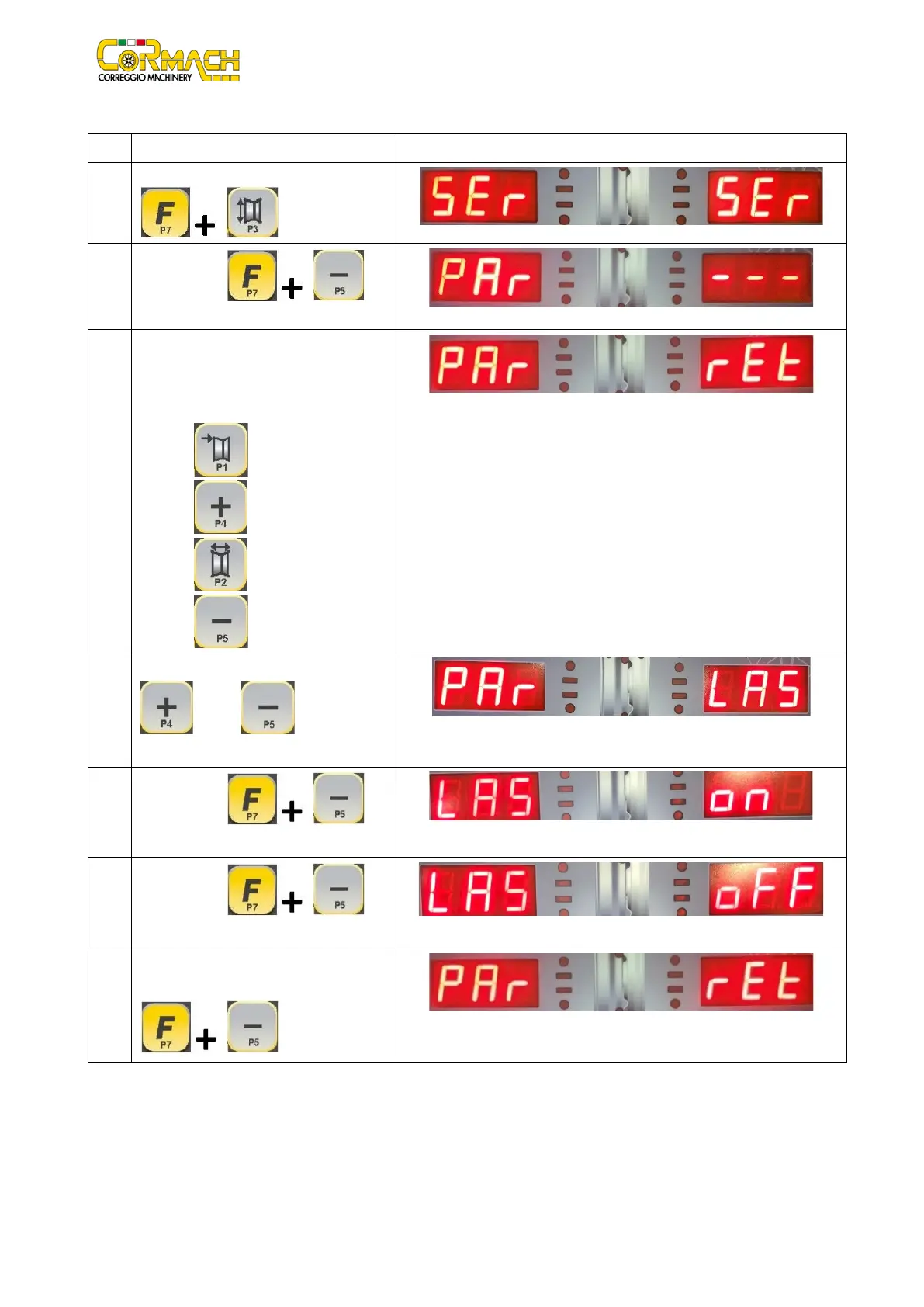 Enter the SERVICE mode by pressing [F+P3]