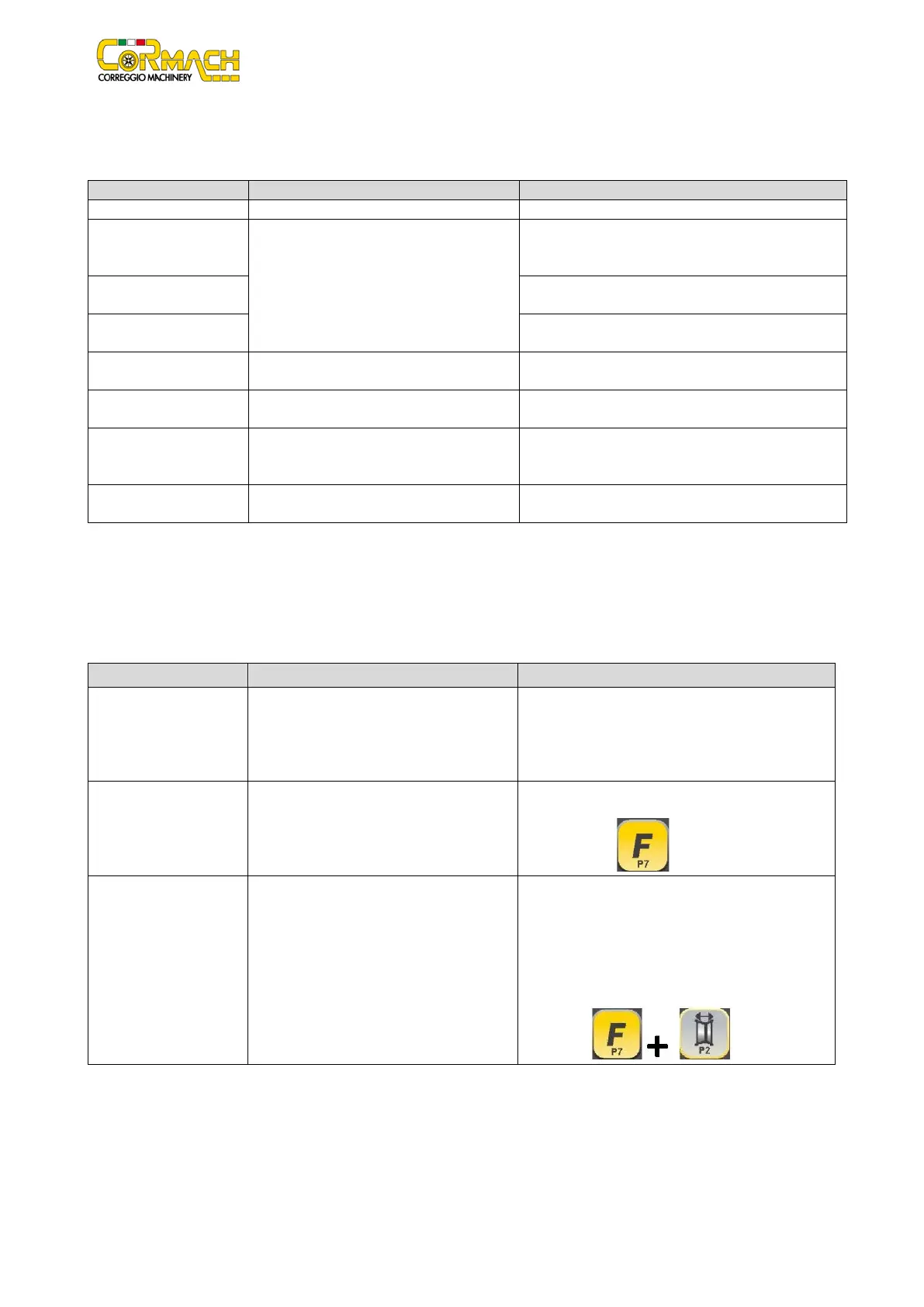 The machine gives special visual signals in certain cases. The special visual signals are listed in table T9.1.