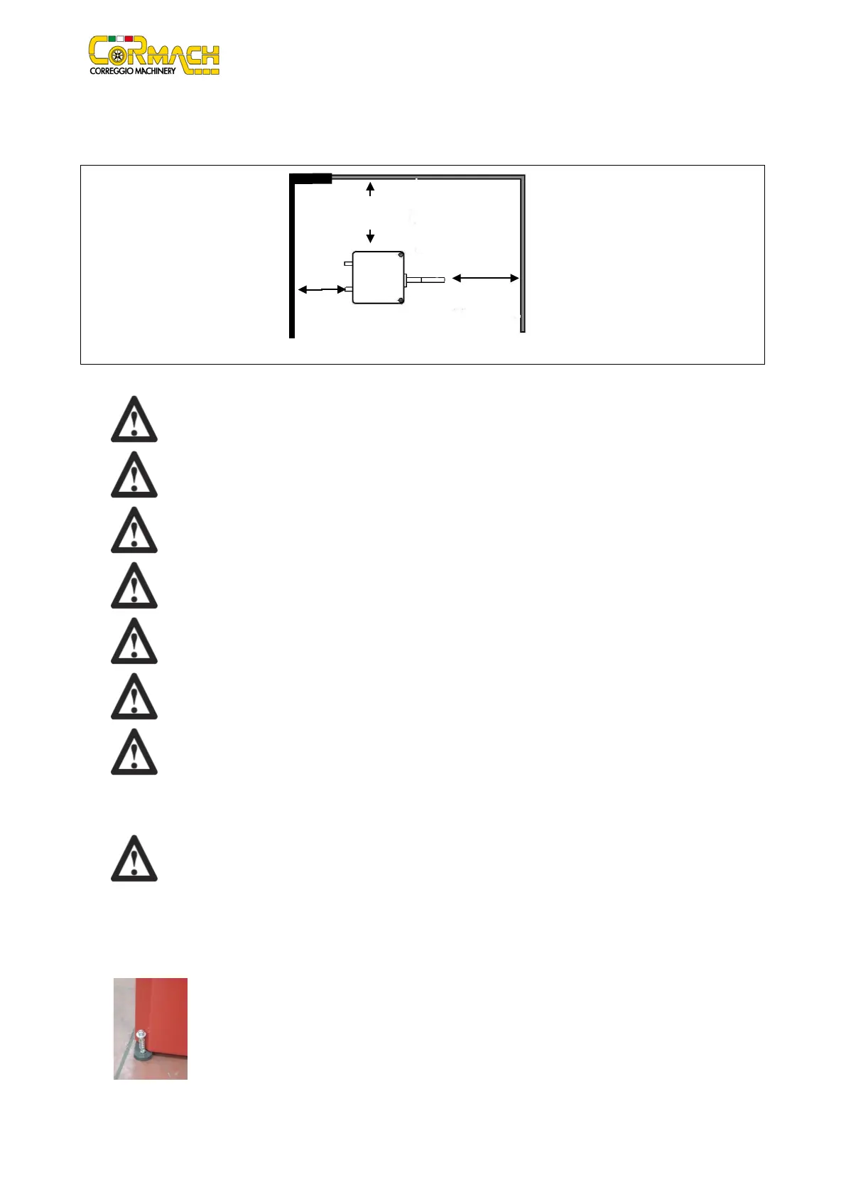 THE MACHINE MUST BE SECURED TO THE GROUND WITH SCREWS AND EXPANSION PLUGS, ACCORDING