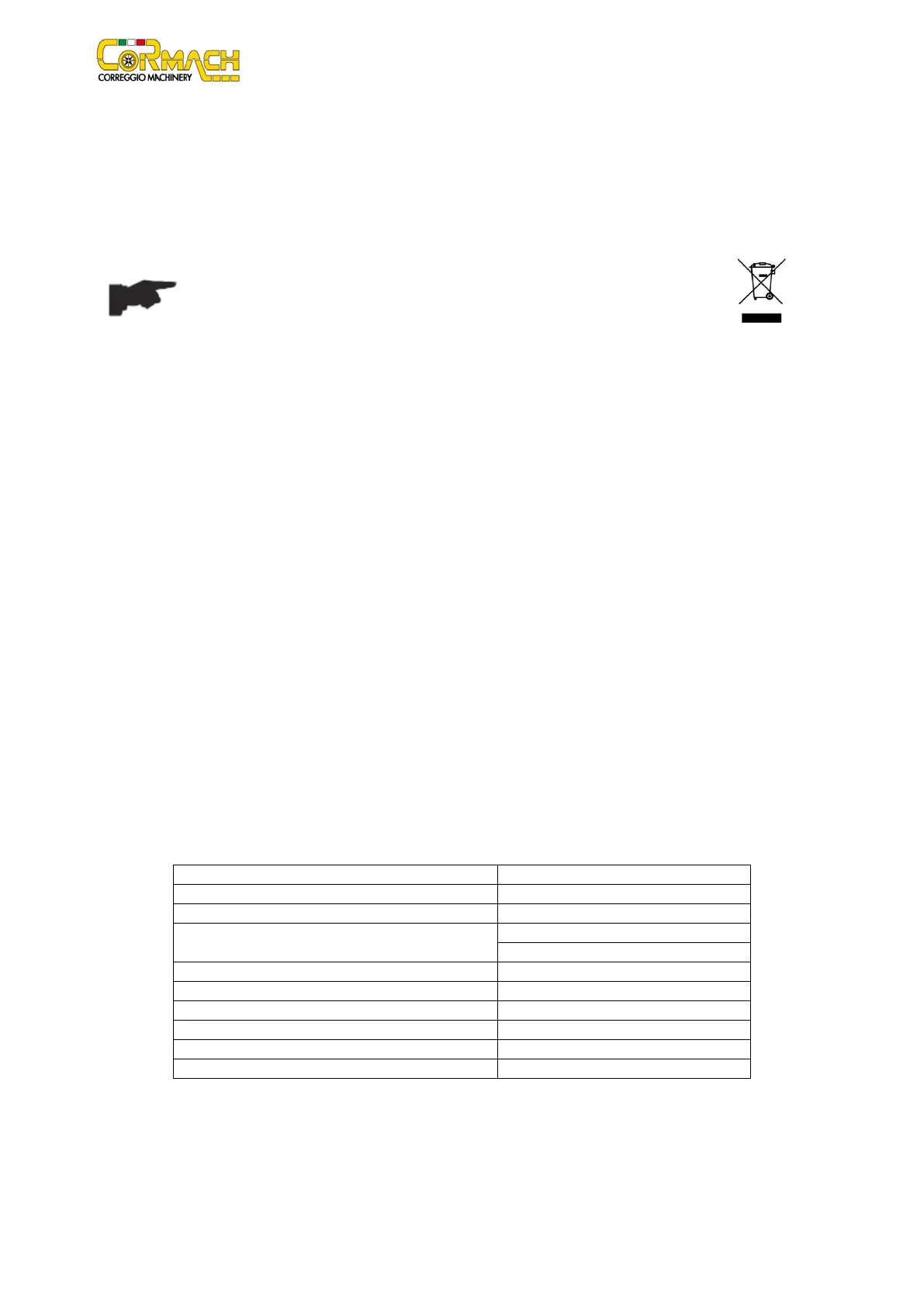 In case the machine is not used for a long time it is necessary to disconnect the power supply and protect all parts that could be