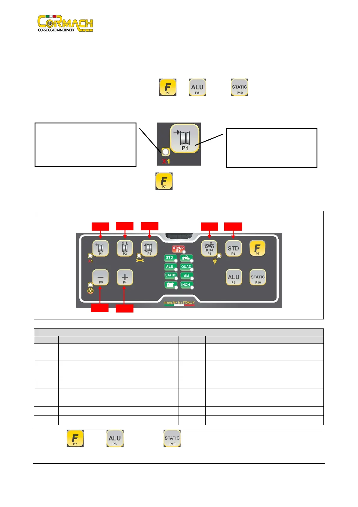 To enter the secondary function of a key, press the [P7] then, by holding it down, press one of the keys for which a secondary