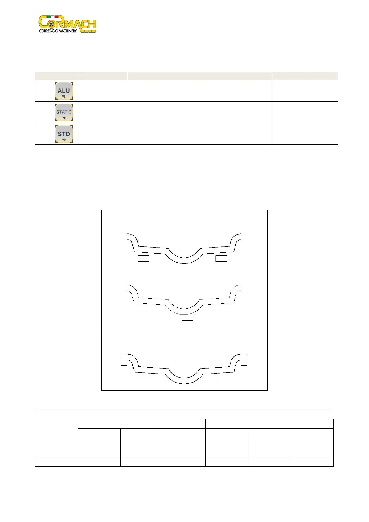 The machine allows choosing among eight different Balancing Program Types as listed in table T15.1.