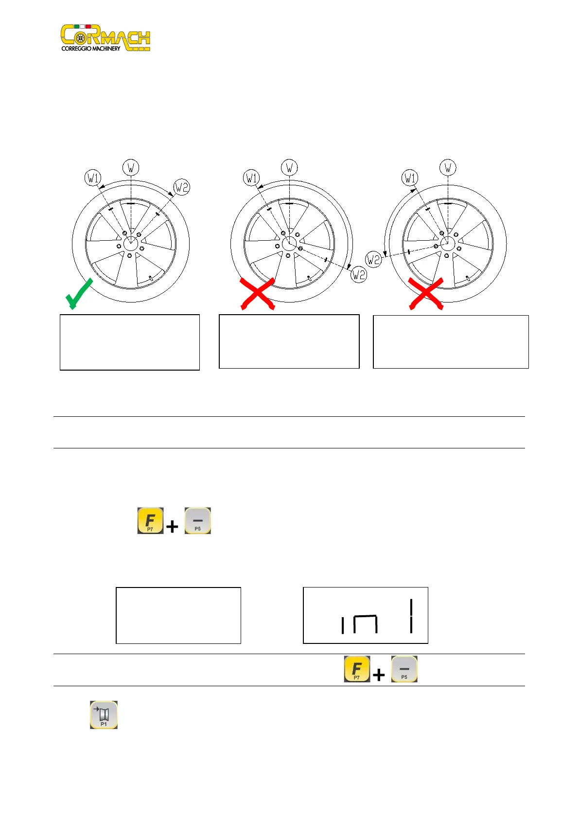 4. Press [F+P5] to run the Hidden Weights program. If the wheel is balanced on the external side, the
